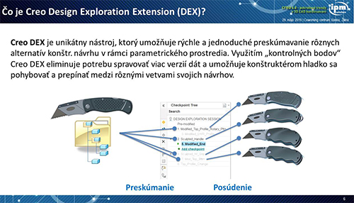 Náročné výzvy pri vývoji rôznych variantov výrobku, Čo je Creo Design Exploration (DEX)?, Hlavné oblasti Creo DEX, Preskúmanie návrhu, Posúdenie návrhu, Vyšetrenie vplyvu zmien na konštrukčný návrh, Video ukážka, Prečo si zvoliť Creo DEX?,Zhrnutie. |