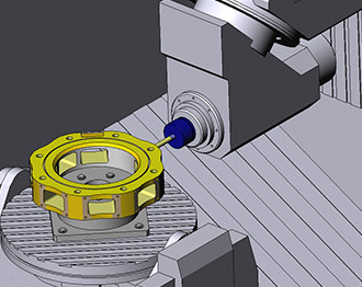 Päťosové indexové opracovanie v softvéri ESPRIT podporuje rôzne kombinácie rotačných stolov a vyklápacích hláv na orientáciu obrobku, ktoré sú potom opracované s 2,5 a 3-osovými operáciami pomocou jedného alebo viacerých cyklov softvéru ESPRIT.