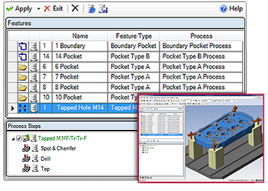 Technologický postup KnowledgeBaseTM umožňuje podrobné riadenie nástrojov a rozsiahlu automatizáciu procesov, pričom automaticky vyberie najvhodnejší postup na opracovanie vybratého prvku - vrátane obrábacích cyklov, rezných nástrojov, rýchlostí a posuvov a všetkých súvisiacich parametrov obrábania. Keď je proces opracovania aplikovaný, tak sa jednotlivé kroky postupu opracovania automaticky prispôsobia geometrii prvkov a ich vlastnostiam. Programátori môžu tiež ľahko vytvárať nové postupy a aktualizovať podrobnosti o existujúcich postupoch opracovania pomocou Procesného Manažéra.