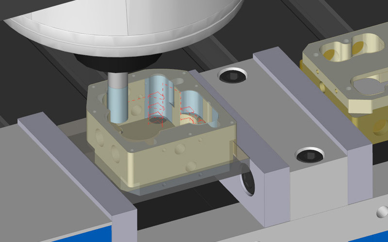 ESPRIT pracuje v reálnom čase zo zbytkovým polotovarom v rámci operácií a medzi operáciami, ako aj medzi nastaveniami, čo zaisťuje kratšie doby cyklov a obrábanie bez kolízií. Zbytkový polotovar je k dispozícii na vizualizáciu v ktoromkoľvek kroku výrobného plánu a simuláciu je možné spustiť v ktoromkoľvek bode programu s použitím toho istého polotovaru. Dynamické monitorovanie polotovaru počas opracovania eliminuje obrábanie vzduchom a umožňuje opätovné zbytkové obrábanie po väčšom nástroji.
