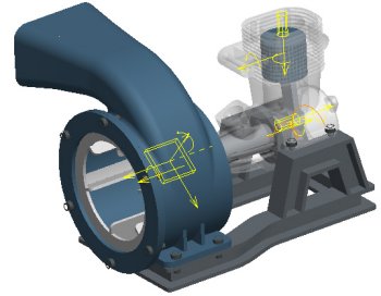 - Expand the BLOWER.ASM in the model tree and select the IMPELLER.PRT to reveal its location in the model.