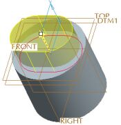 Now that the datum plane and sketch have been created, we will complete the Extrude feature, creating an oval cut that hollows out the PISTON.