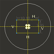 Centerlines promote symmetry when sketching. In this example, we want a rectangle to be sketched symmetrically about the vertical and horizontal references. Centerlines display as a yellow dashed line. |