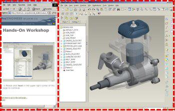 - Position the tutorial on the left of the Pro/ENGINEER Wildfire 3.0 window as shown in the following figure. This will allow you to easily view the tutorial window while working.