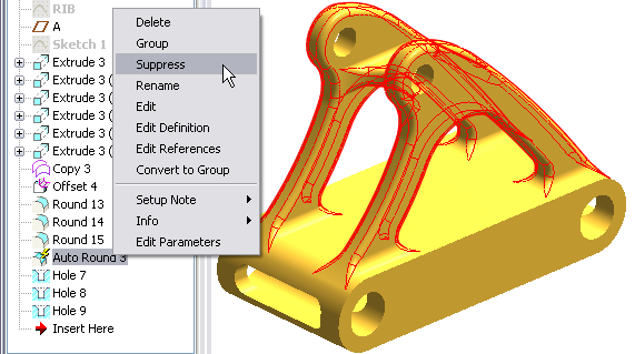 môžeme zjednodušiť model potlačením vonkajších zaoblení. Vyberte prvok