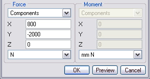 nadefinujte hodnoty silového zaťaženia v smere X = 800N a v smere Y = -2000N. Po