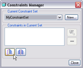 (Close) v okne Správca obmedzení (Constraints Manager).