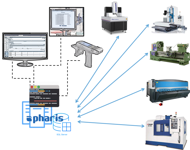 V digitálne riadenom výrobnom procese CNC výroby je veľmi dôležité mať uzavretú sľučku medzi MES a ERP systémami. MES PHARIS® a jeho štandardizované komunikačné rozhranie umožňuje efektívne napojenie ERP systému a to pomocou dvoch typov pripojení. Prvým je špecifické štandardizované rozhranie pre pripojenie SAP. Druhým je štandardizované rozhranie pre ostatných výrobcov ERP. PHARIS je napojený na širokú škálu ERP systémov, medzi ktoré patrí napr. HELIOS, QI, K2, OR-SYSTEM, NAVISION, ENTRY, DIALÓG 3000, BYZNYS, ES POHODA ...
