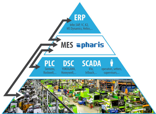 Otvorenosť systému PHARIS tiež spočíva v možnosti prepojenia s ERP informačnými systémami a umožňuje podnikom uzavretú sľučku digitalizácie výrobných procesov.