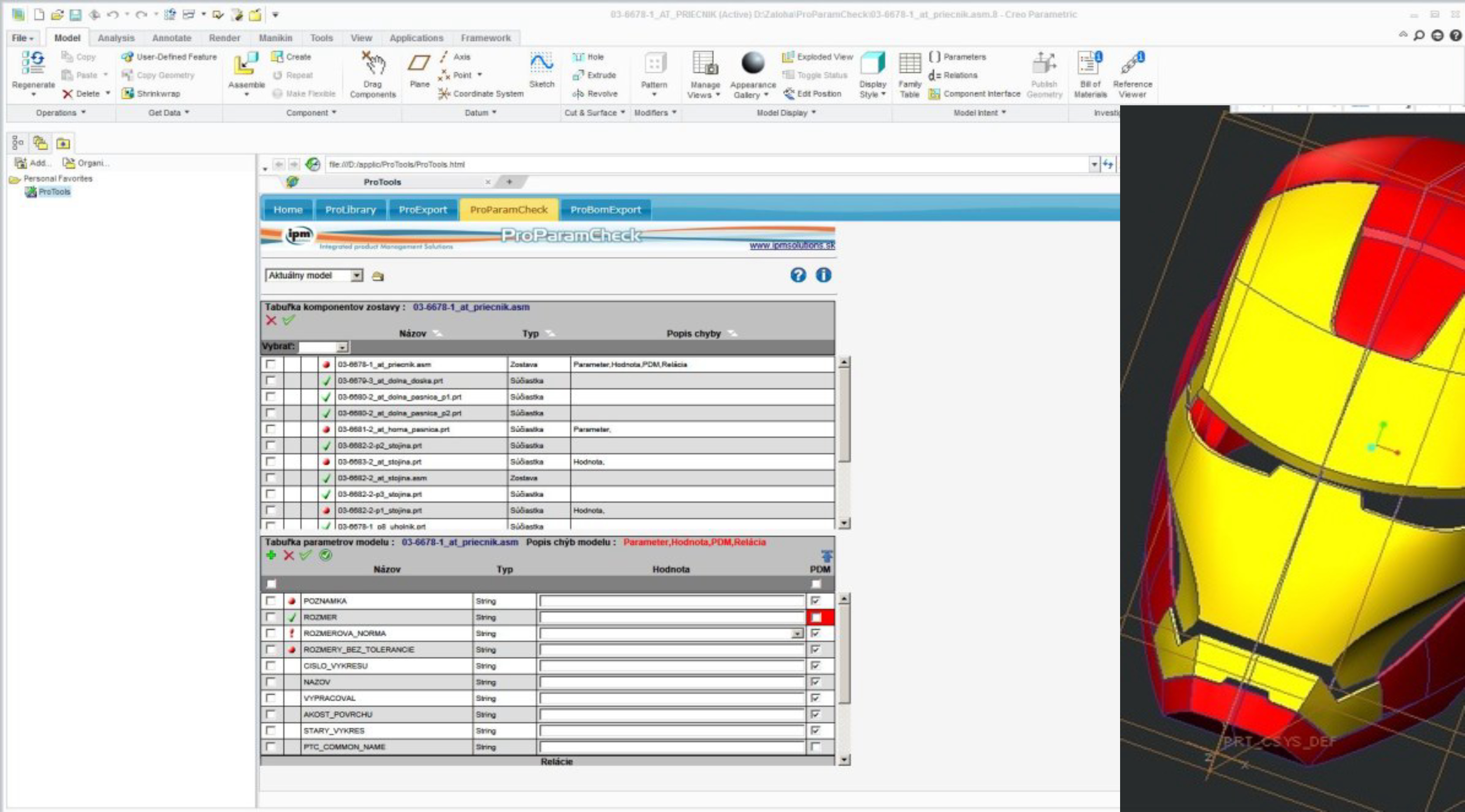 Aplikácia ProParamCheck slúži na automatizovanie práce s parametrami v PTC Creo Parametric. Je možné ju používať na partoch, zostavách a výkresoch. Aplikácia bola vyvíjaná s ohľadom na prenos parametrov z PTC Creo Parametric do PDM/PLM systému.