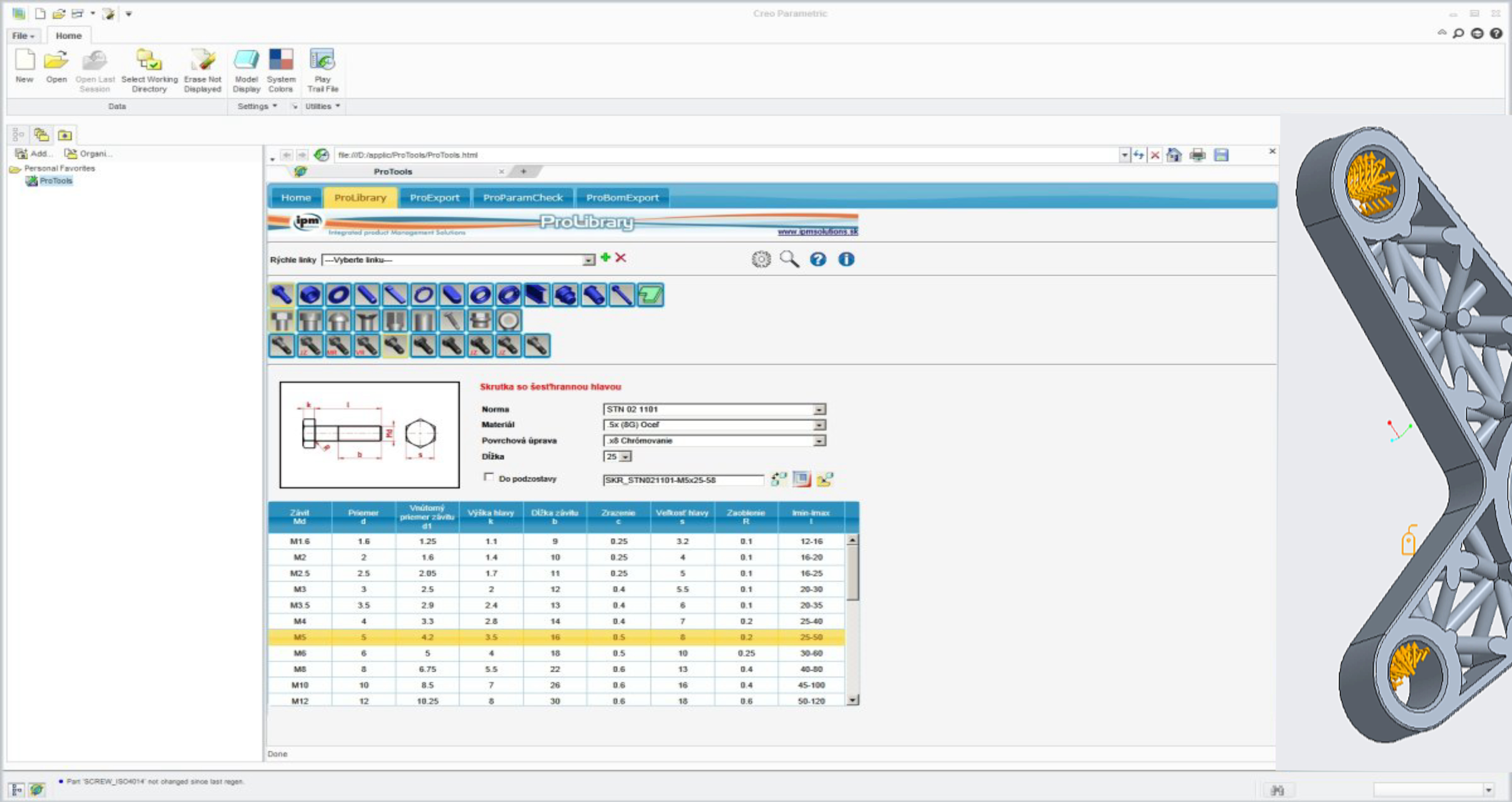 Knižnica štandardizovaných spojovacích dielov ProLibrary je produkt pre konštruktérov založený na internetovej technológii. Slúži na vkladanie normalizovaných súčiastok do zostáv PTC Creo Parametric od verzia Wildfire 3.0 a vyšších. ProLibrary umožňuje vypĺňať príslušné parametre automatických kusovníkov podľa zvolenej normy STN, ISO, DIN. Užívateľom ponúka názorné grafické rozhranie plne integrované do prostredia PTC Creo Parametric. Jej obsluha je jednoduchá, rýchla a súčiastky sú prehľadne štruktúrovane rozčlenené. Licencovanie je zabezpečené lokálne pre každý počítač, na ktorom sa knižnica používa.