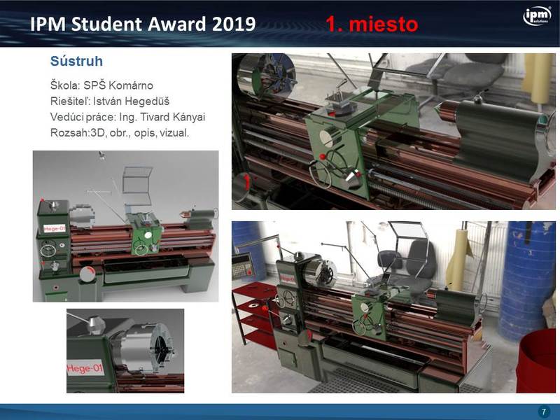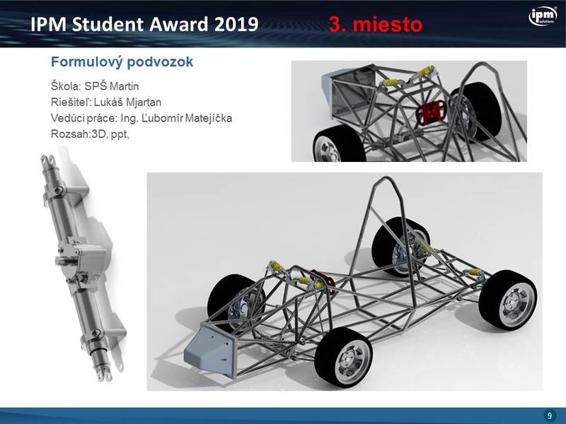 Štátny inštitút odborného vzdelávania v Bratislave a firma IPM SOLUTIONS, s. r. o., organizační a odborní garanti súťaže, vyhlásili výsledky 18. ročníka Celoštátnej súťaže odborných vedomostí a zručností v oblasti využívania grafických systémov vo vyučovacom procese stredných škôl „IPM STUDENT AWARD“ pre rok 2019.