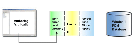 Pri práci v Creo Parametric pripojenom na Windchill PDMLink alebo vo Windchill Workgroup Manager sa dáta ukladajú do pracovného priestoru. Pracovný priestor sa skladá z dvoch časti, a to z pracovného priestoru na strane klienta (užívateľské PC) a z pracovného priestoru na strane servera. Pri práci v Creo Parametric sa dáta najprv ukladajú do lokálneho pracovného priestoru a až pri akcii Nahrať alebo Zapísať do DB prechádzajú aj do pracovného priestoru na strane servera.
