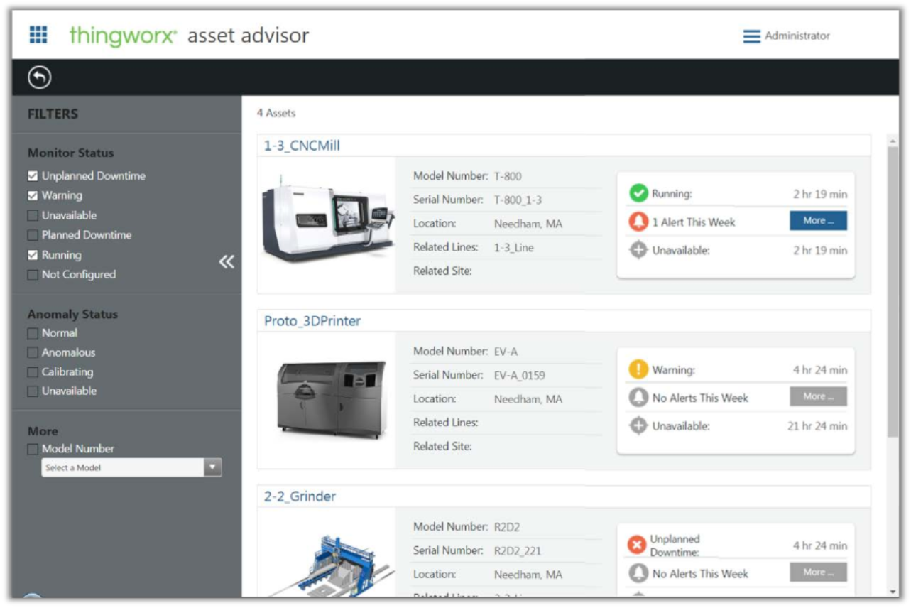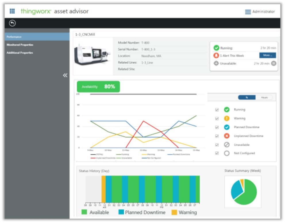 Web/mobilná aplikácia pre pracovníkov údržby, ktorá poskytuje viditeľnosť kondície a stavu zariadenia v reálnom čase. Ohlasuje údržbe potenciálne problémy, ktoré môžu mať vplyv na produkciu výroby. Poskytuje jednoduché nástroje pre zisťovanie trendov a riešenie problémov.