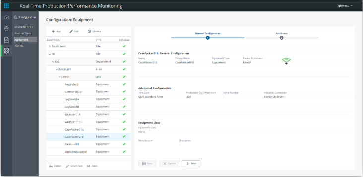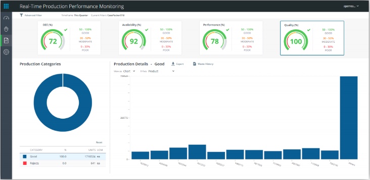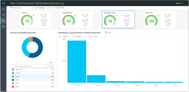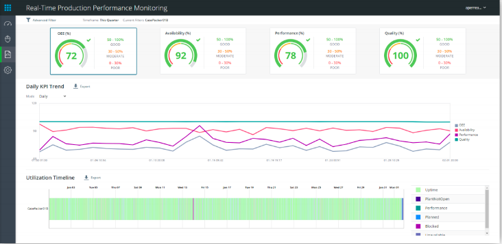 - Poskytuje normatívny spôsob zachytenia, kontextualizácie a vizualizácie OEE. Údaje KPI so šablónou, ktorá je navrhnutá tak, aby zodpovedala rýchlosti a rozsahu.