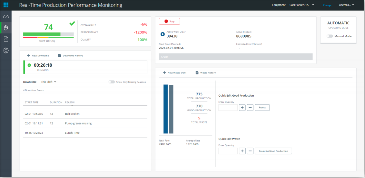 - Umožnite operátorom manuálne pridať údaje o odpade,prestojoch, výrobe