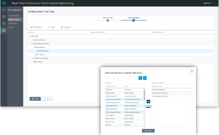- Umožnite používateľovi spravovať stromy príčin pre prestoje a plytvanie udalosťami