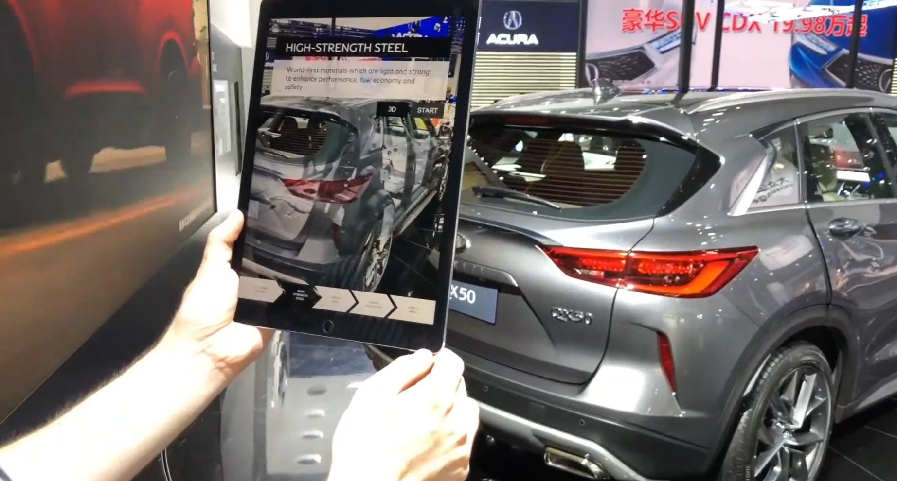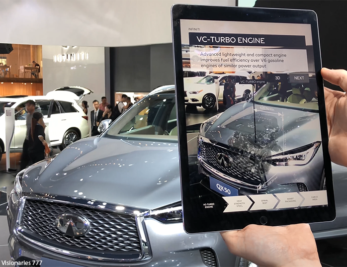 Spoločnosť INFINITY ponúkla zákazníkom inovatívny spôsob, ako zažiť svoje nové vozidlo QX50 pomocou riešenia rozšírenej reality spoločnosti PTC a partnerstva s agentúrou Visionaires 777 s cieľom zvýšiť angažovanosť a zlepšiť predajné konverzácie.