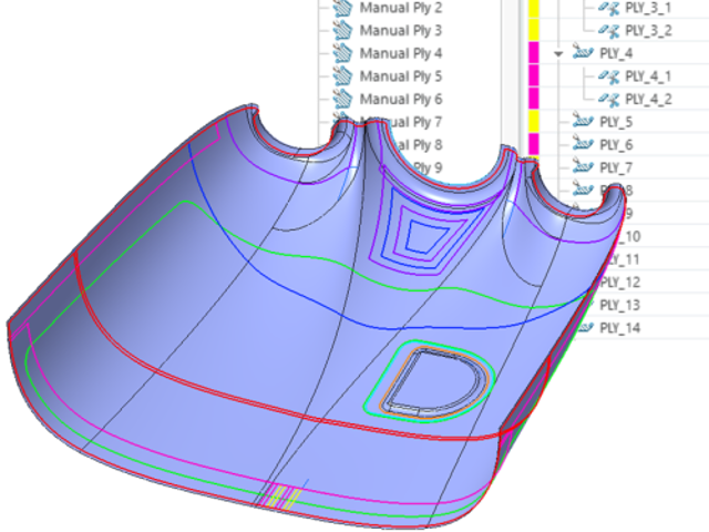 Zaujímavé sú ich vlastnosti, pretože sú to silné, odolné a ľahké materiály. Creo Composite & Manufacturing je zameraný hlavne na kompozitné produkty FRP (polyméry vystužené vláknami), ktoré sa vyrábajú manuálnym vrstvením. Modul je k dispozícii od verzie PTC Creo 10.0.1.0.