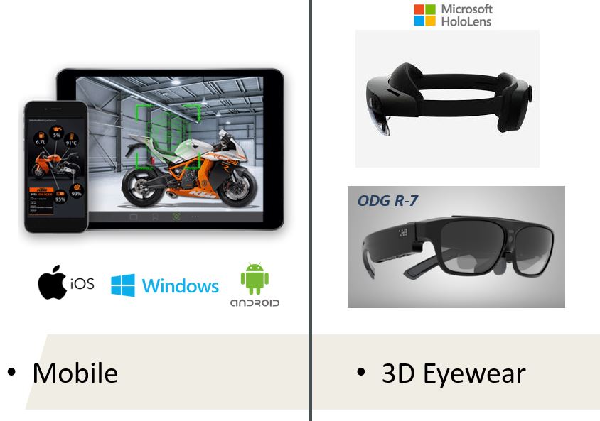 Pre zobrazenie skúsenosti, teda grafickej informácie sa používajú mobilné zariadenia ako aj 3D okuliare.