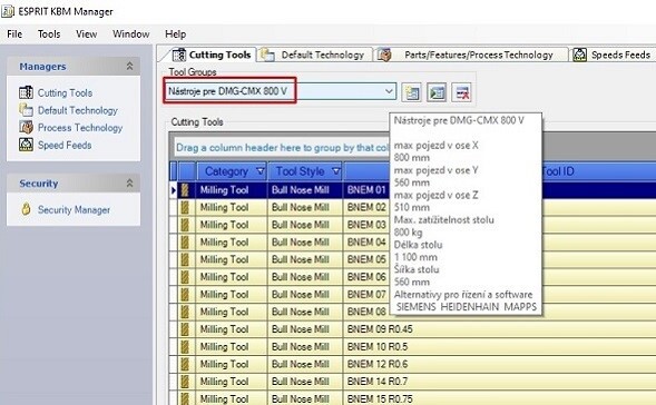 Spravujte tu vaše nástroje a rezné parametre, môžete si tiež nastaviť vlastné predvolené hodnoty operácií. Nechajte KnowledgeBase urobiť programovanie za vás, pretože vie rýchlo aplikovať viac operácií súčasne.