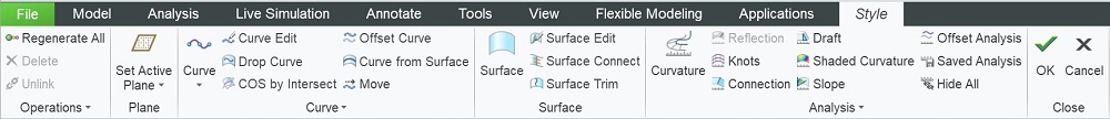 Samostatný modul ISDX (Interactive Surface Design Extension) umožňuje spustiť v Creo Parametric funkciu Style. Funkcia Style spustí samostatné, intuitívne dizajnové prostredie v rámci Creo Parametric, ktoré vám umožňuje rýchlo a jednoducho vytvárať krivky a plochy voľného tvaru a kombinovať viacero prvkov do tzv. superprvkov. Tieto style superprvky môžu obsahovať neobmedzené množstvo rôznych kriviek a plôch.