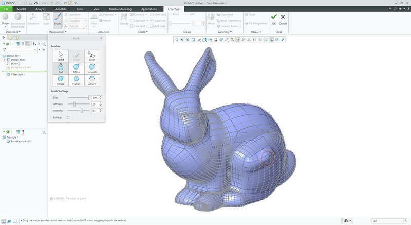 Obr. 3. Nástroj Freestyle Brush umožňuje používať sochárske funkcie na jednoduchú manipuláciu a úpravu siete.