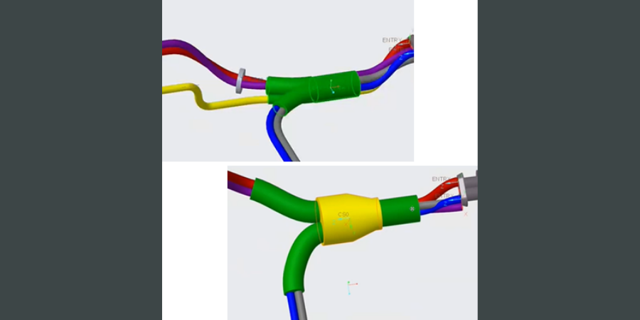 V Creo 8 môžete použiť novú funkciu dostupnú v module Cabling a to Branch Tape, na vizuálne znázornenie elektrikárskej pásky omotanej okolo drôtov alebo káblových zväzkov. Farba, šírka pásky a aj hrúbka pásky sú prispôsobiteľné. Môžete tiež nastaviť faktor prekrytia, jednotlivých presahov pásky medzi sebou, ktorý definuje o koľko percent sa budú prekrývať jednotlivé otočenia pásky okolo káblov.